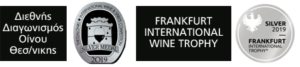 Βραβεια: Ασημένιο μετάλλιο στο Διεθνή Διαγωνισμό Οίνου Θεσσαλονίκης 2019, Ασημένιο μετάλλιο στο Διαγωνισμό Frankfurt International Wine Trophy 2019.