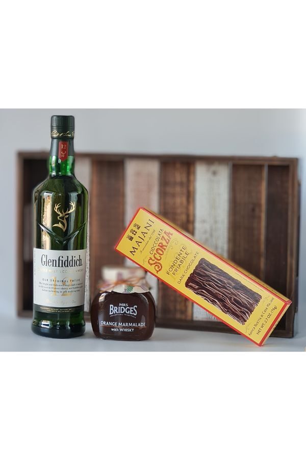 Στην καρδιά του καλαθιού βρίσκεται το παγκοσμίως γνωστό ουίσκι Glenfiddich 12 Year Old, που αποτελεί την επιτομή της παράδοσης και της ποιότητας. Το Glenfiddich ωριμάζει σε προσεκτικά επιλεγμένα δρύινα βαρέλια από Sherry και Bourbon για τουλάχιστον 12 χρόνια, αποκτώντας μοναδικό βάθος και ισορροπία. Στη γεύση του, διακρίνονται νότες από ώριμα φρούτα, βανίλια και απαλές πινελιές ξύλου, κάνοντάς το ιδανικό για χαλαρές γιορτινές στιγμές μπροστά στο τζάκι. Είναι το τέλειο ουίσκι για όσους απολαμβάνουν την αυθεντική εμπειρία ενός premium αποστάγματος.
